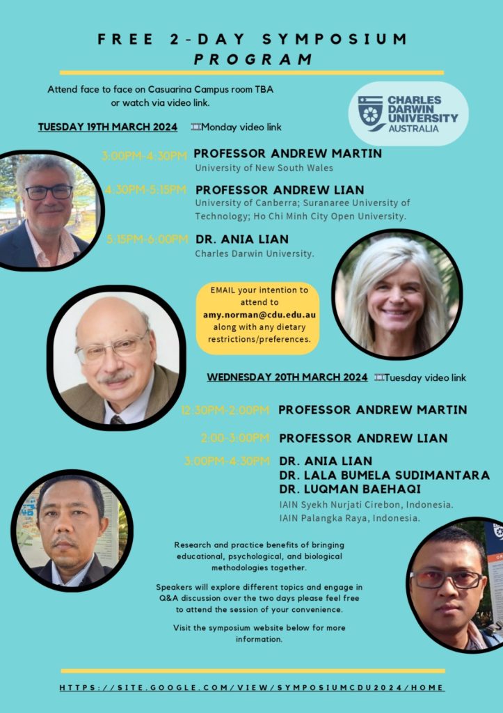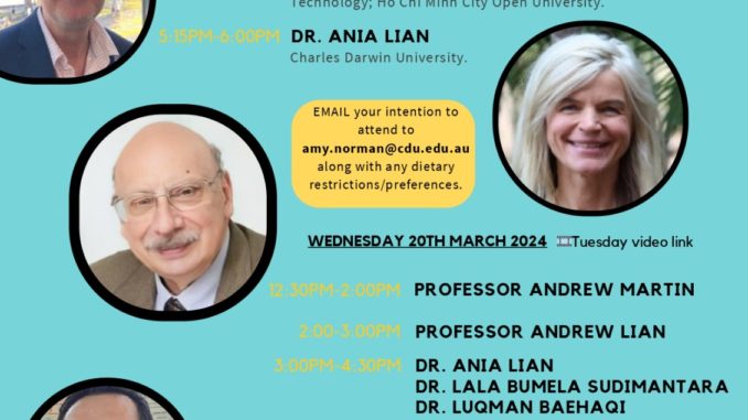 Dengan melibatkan para ahli dari berbagai institusi terkemuka, seperti Profesor Dr. Andrew Martin dari UNSW, Dr. Ania Lian dari CDU, Professor Dr. Andrew Lian, SUT, HCMOU, University of Canberra, Lala Bumela Sudimantara, Ph.D., and Dr. Luqman Baehaqi, Symposium ini menjanjikan diskusi yang kaya akan ide dan penemuan terbaru dalam bidang ini.