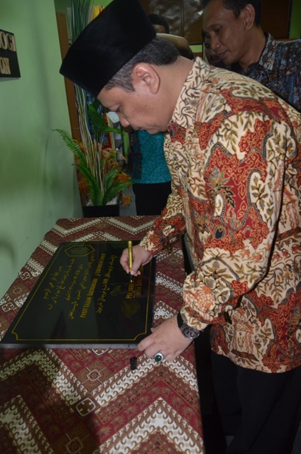 Sultan Sepuh XIV Keraton Kasepuhan Cirebon PRA. Arief Natadiningrat menandatangani Prasasti Cirebonese Corner Perpustakaan Pusat IAIN Syekh Nurjati Cirebon Tahun 2016.