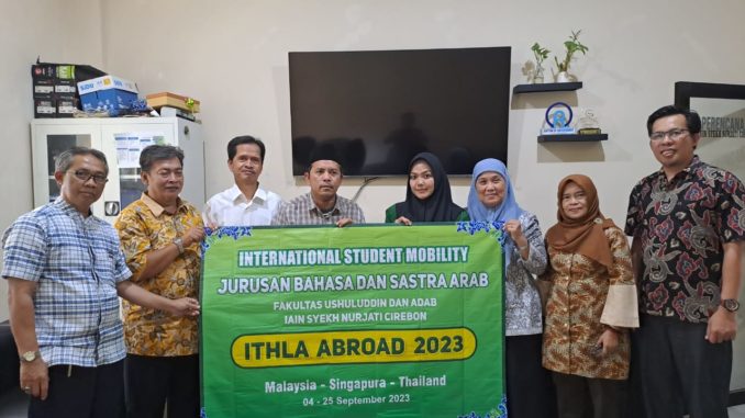 Cirebon (29/08). Rektor IAIN Syekh Nurjati Cirebon, Prof. Dr. H. Aan Jaelani, M.Ag melepas mahasiswa Jurusan Bahasa dan Sastra Arab (BSA) Fakultas Ushuludin dan Adab peserta program International Student Mobility (ISM) di Malaysia, Singapura dan Thailand. Pelepasan ini langsung dipimpin oleh Rektor didampingi oleh wakil rektor bidang kemahasiswaan dan kerjasama Prof. Dr. Hajam, M.Ag, Ketua Biro AUAK Ir. Sunarini, M.Kom Dekan Fakultas Ushuluddin dan Adab Dr. Anwar Sanusi, M.Ag, dan Ketua Jurusan BSA, Maman Dzul ‘iman, S.Ag, MA.