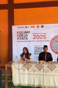 UIN Siber Cirebon (Gunungsari) – Dalam rangka membangun masyarakat yang Qur’ani dan berdaya secara spiritual, Mahasiswa KKN Kelompok 129 UIN Siber Syekh Nurjati Cirebon menyelenggarakan Lokakarya bertema “Penguatan Literasi Al-Qur’an Masyarakat” pada Kamis (31/7), bertempat di Aula Balai Desa Gunungsari, Kecamatan Waled, Kabupaten Cirebon. Kegiatan ini berlangsung dari pukul 10.10 hingga 12.30 WIB, dengan dihadiri oleh perangkat desa, tokoh agama, masyarakat setempat, serta Dosen Pembimbing Lapangan dan seluruh anggota KKN.