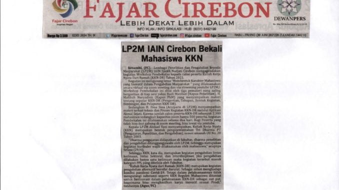 LP2M IAIN Cirebon Bekali Mahasiswa KKN (Fajar Cirebon/30 Juni 2021) 13 Oktober 2021 arifin Kliping Digital 0 LP2M IAIN Cirebon Bekali Mahasiswa KKN