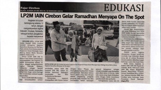 LP2M IAIN Cirebon Gelar Ramadhan Menyapa On The Spot (Fajar Cirebon/4 Mei 2021) 12 Oktober 2021 arifin Kliping Digital 0 LP2M IAIN Cirebon Gelar Ramadhan Menyapa On The Spot