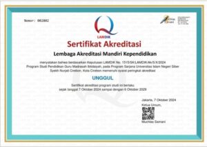 UIN Siber Cirebon – Prestasi gemilang kembali diraih oleh Universitas Islam Negeri Siber Syekh Nurjati Cirebon Program Studi Pendidikan Guru Madrasah Ibtidaiyah (PGMI) di bawah naungan Fakultas Ilmu Tarbiyah dan Keguruan (FITK) berhasil meraih Akreditasi Unggul dari Lembaga Akreditasi Mandiri Kependidikan (LAMDIK). Pencapaian ini diumumkan melalui Surat Keputusan LAMDIK No. 1515/SK/LAMDIK/Ak/S/X/2024, yang menyatakan bahwa Program Studi PGMI dinyatakan memenuhi syarat peringkat Akreditasi Unggul terhitung sejak 7 Oktober 2024 hingga 6 Oktober 2029.