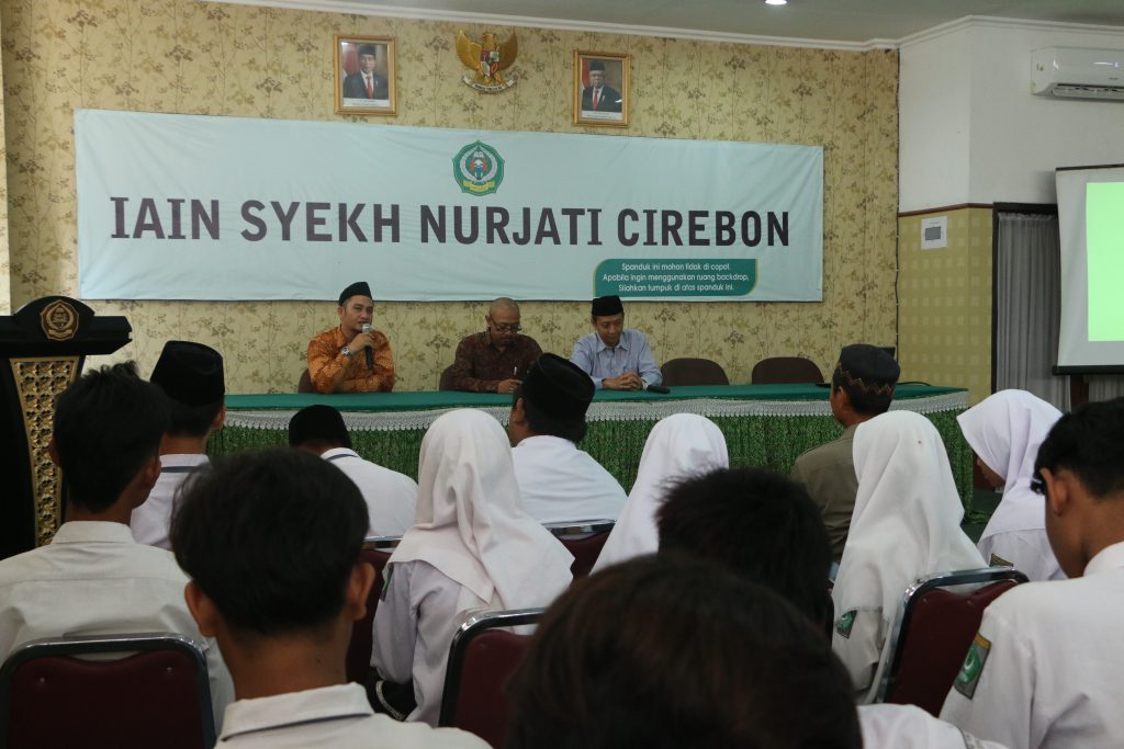 Institut Agama Islam Negeri (IAIN) Syekh Nurjati Cirebon menerima kunjungan dari Madrasah Aliyah (MA) PUI Kertasmaya Indramayu mengunjungi kampus Institut Agama Islam Negeri (IAIN) Syekh Nurjati Cirebon, rombongan langsung disambut oleh Dr. H. Saefudin Zuhri, M.Ag (Warek I), didampingi oleh Kamalul Iman Billah, S.Ag., M.A., M.Ak. (Kabag Akademik dan Kemahasiswaan) beserta pegawai staff jajarannya di aula gedung rektorat lantai 3. Rombongan dari MA PUI Kartasunya Indramayu berjumlah sekitar 100 siswa terdiri dari 35 siswa dan siswi yang didampingi oleh Latiful Khoir, S.Pd.I (Wakil Kepala Kurikulum MA PUI) dan pendamping lainnya. Tujuan kunjungan ini adalah untuk meberikan wawasan kepada siswa-siswi tentang kampus IAIN Syekh Nurjati Cirebon sehingga siswa-siswi tertarik untuk belajar dan meningkatkan prestasinya yang diharapkan nantinya bisa meneruskan pendidikannya ke bangku kuliah, khususnya masuk ke IAIN Syekh Nurjatio Cirebon. Selasa (4/2/2020).