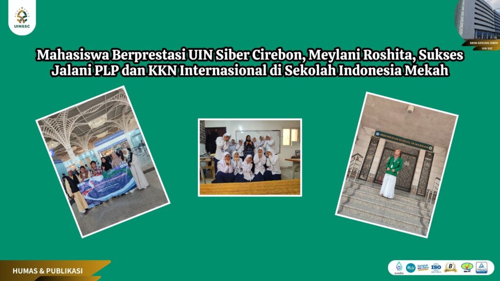 UIN Siber Cirebon (Mekkah, Arab Saudi) – Meylani Roshita, mahasiswa semester 7 Program Studi Tadris Matematika di Fakultas Ilmu Tarbiyah dan Keguruan (FITK) UIN Siber Syekh Nurjati Cirebon, telah berhasil menyelesaikan program Pengenalan Lapangan Perkuliahan (PLP) dan Kuliah Kerja Nyata (KKN) Internasional di Sekolah Indonesia Mekah (SIM), Arab Saudi. Program ini berlangsung dari 28 Agustus hingga 25 September 2024 dan memberi Meylani pengalaman berharga dalam mengajar dan berinteraksi di komunitas internasional.