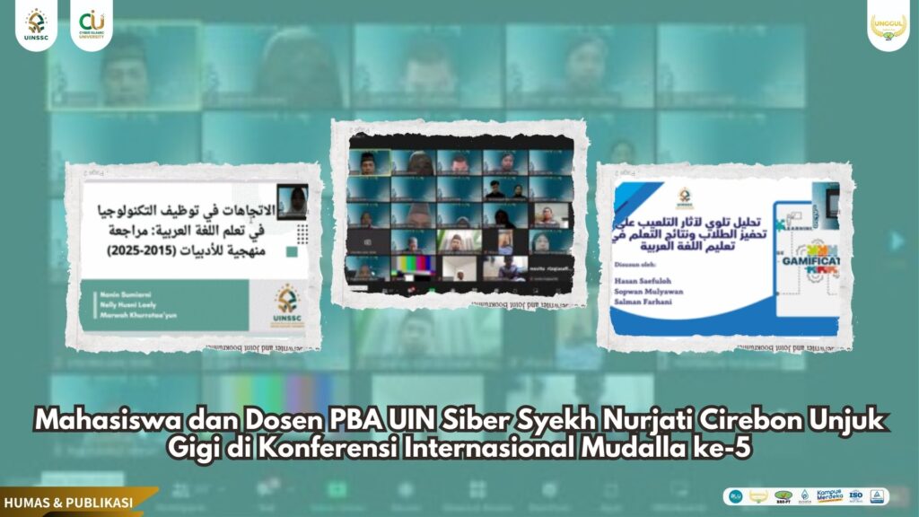 UIN Siber Cirebon — Jurusan Pendidikan Bahasa Arab (PBA) Universitas Islam Negeri (UIN) Siber Syekh Nurjati Cirebon kembali menorehkan prestasi akademik membanggakan melalui keikutsertaan aktif dua mahasiswanya dan empat dosen dalam ajang internasional bergengsi Konferensi Internasional Mudalla ke-5 (Al-Mu’tamar Ad-Dauli lil Lughoti al-‘Arabiyah wa Ta’limiha), yang digelar secara daringoleh Universitas Negeri Malang. (28/08).