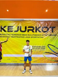 UIN Siber Cirebon — Prestasi membanggakan kembali ditorehkan oleh mahasiswa Universitas Islam Negeri (UIN) Siber Syekh Nurjati Cirebon. M. Fathir Rohmawi, mahasiswa Program Studi Hukum Tata Negara Islam (HTNI) Fakultas Syari’ah (Fasya), berhasil meraih Juara 3 Tunggal Putra dalam ajang Kejuaraan Kota (Kejurkot) Cirebon 2025 yang digelar pada Minggu, 16 November 2025.