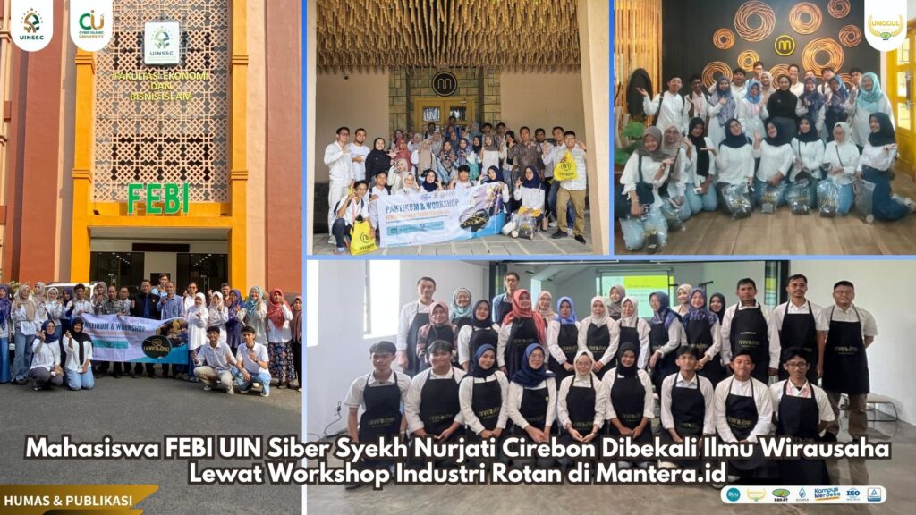 UIN Siber Cirebon — Dalam upaya mendorong semangat kewirausahaan berbasis potensi lokal, Pusat Inkubasi Bisnis dan Kewirausahaan (PINBUK) Fakultas Ekonomi dan Bisnis Islam (FEBI) UIN Siber Syekh Nurjati Cirebon menggelar Praktikum dan Workshop Kewirausahaan bertajuk “Tantangan dan Peluang Bisnis Industri Rotan”. Kegiatan inspiratif ini diselenggarakan di Mantera.id, salah satu pelaku industri kreatif rotan terkemuka di Cirebon.(16/07).