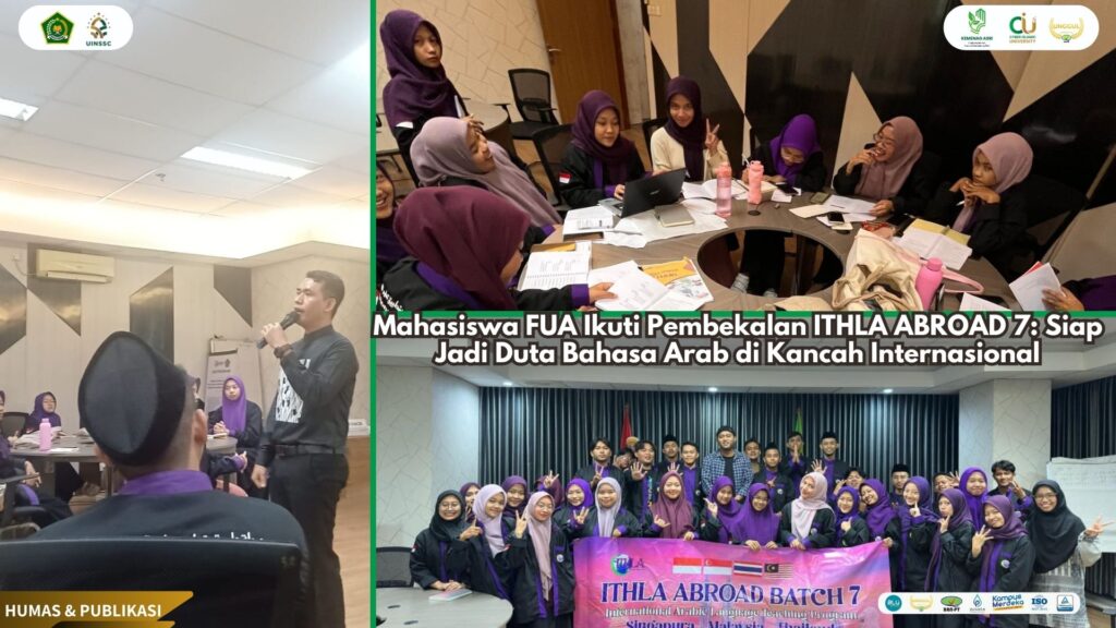 Dari UIN Siber Syekh Nurjati Cirebon, dua mahasiswa Jurusan Bahasa dan Sastra Arab (BSA) FUA, yaitu Ahmad Faizin Muzaqi dan Razanne Aghnia Ilmi, terpilih menjadi peserta ITHLA ABROAD Batch 7. Keduanya menunjukkan antusiasme tinggi selama mengikuti seminar pembekalan.