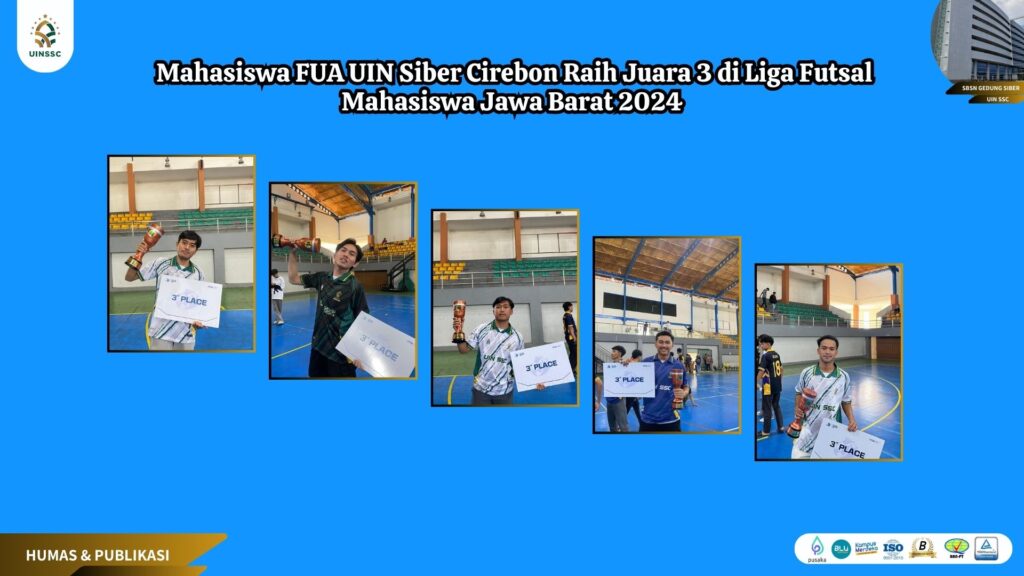 UIN Siber Cirebon (Bandung) – Mahasiswa dari Jurusan Ilmu Alqur’an dan Tafsir (IAT) serta Sejarah Peradaban Islam (SPI), Fakultas Dakwah dan Komunikasi Islam, UIN Siber Syekh Nurjati Cirebon, sukses meraih Juara 3 dalam Liga Futsal Mahasiswa Jawa Barat 2024. Kompetisi bergengsi ini diikuti oleh berbagai perguruan tinggi terkemuka di Jawa Barat dan berlangsung sangat kompetitif.