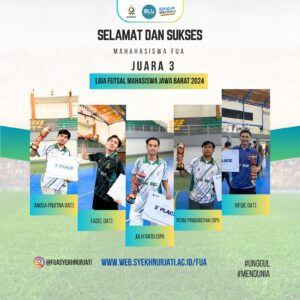 Beberapa mahasiswa FUA menjadi bagian dari Tim Futsal UIN Siber Cirebon yang diwakili oleh Perdi Pirmansyah (SPI), Juliyanto (SPI), Angga Priatna (IAT), Fadel (IAT), dan Rifqie (IAT) menunjukkan performa luar biasa dalam pertandingan yang digelar pada Minggu, 13 Oktober 2024. Keberhasilan ini membuktikan bahwa mahasiswa UIN Siber Syekh Nurjati Cirebon tidak hanya berprestasi di bidang akademik, tetapi juga mampu bersaing di kancah olahraga.