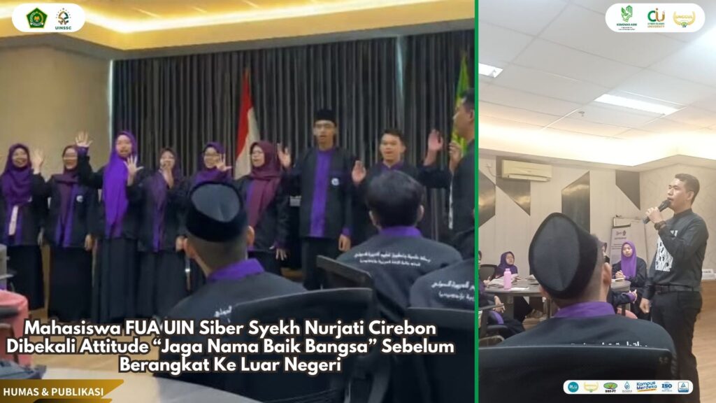 UIN Siber Cirebon (Jakarta) —Aula Pusdiklat Kementerian Agama Republik Indonesia dipenuhi semangat dan antusiasme mahasiswa dari berbagai perguruan tinggi keislaman yang tergabung dalam program ITHLA Abroad, termasuk di antaranya mahasiswa Fakultas Ushuluddin dan Adab (FUA) UIN Siber Syekh Nurjati Cirebon. Dalam kegiatan ini, mereka menerima pembekalan khusus bertajuk “Attitude Luar Negeri: Jaga Nama Baik Bangsa”, yang menjadi salah satu kunci utama kesuksesan dalam menjalani peran sebagai pengajar sekaligus duta budaya di negara tujuan.(21/09).
