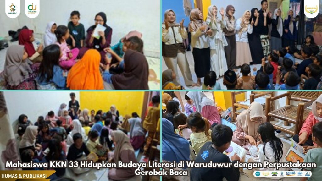UIN Siber Cirebon (Waruduwur) — Mahasiswa Kuliah Kerja Nyata (KKN) kelompok 33 menghadirkan inovasi dalam bidang literasi dengan meluncurkan program unggulan bertema “Literasi Baca Tulis Masyarakat” di Desa Waruduwur. Program ini diwujudkan melalui perpustakaan keliling berbasis gerobak baca yang disambut meriah oleh warga, khususnya anak-anak. (17/08).