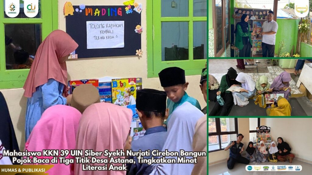 UIN Siber Cirebon (Astana) – Dalam upaya menumbuhkan minat baca dan membangun budaya literasi sejak dini, Mahasiswa Kuliah Kerja Nyata (KKN) Kelompok 39 Universitas Islam Negeri Siber Syekh Nurjati Cirebon membangun Pojok Baca Inspiratif di tiga titik Desa Astana, Kecamatan Gunung Jati. Lokasi tersebut meliputi MI Syarif Hidayatullah, Majlis Al-Hidayah, dan Majlis Al-Mustaghfirin.(08/08).