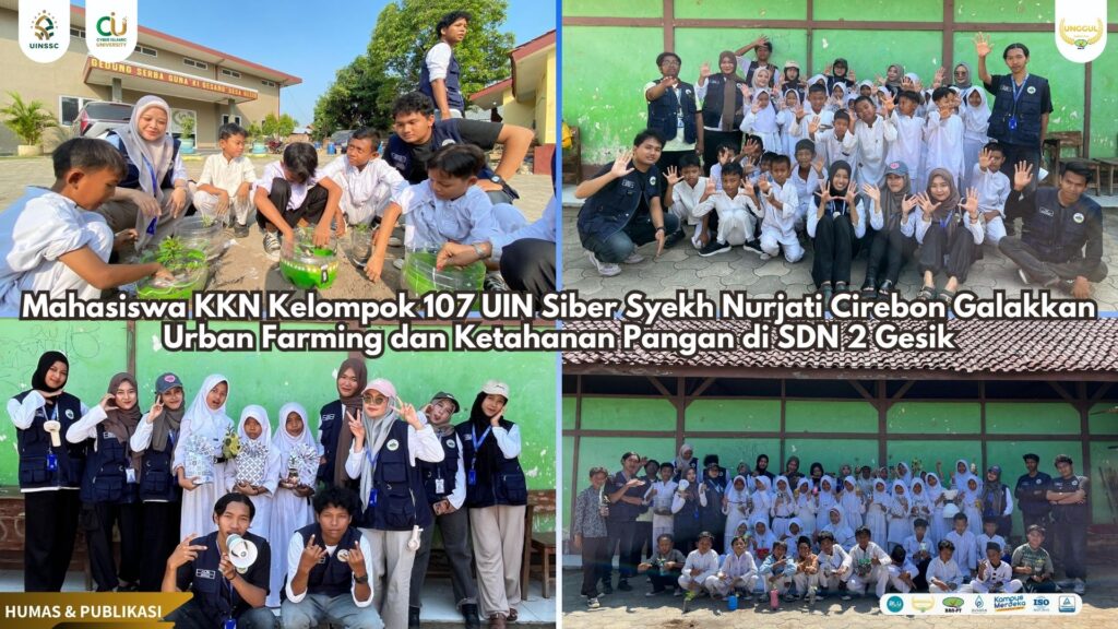 UIN Siber Cirebon (Gesik) – Dalam rangka mendukung pendidikan lingkungan dan ketahanan pangan sejak usia dini, Mahasiswa Kuliah Kerja Nyata (KKN) Kelompok 107 UIN Siber Syekh Nurjati Cirebon menggelar rangkaian kegiatan edukatif bertema Urban Farming dan Ketahanan Pangan di SDN 2 Gesik, Kecamatan Tengah Tani. Kegiatan yang menyasar siswa kelas 5 dan 6 ini berlangsung selama tiga hari, mulai Selasa (29/7) hingga Jumat (1/8).