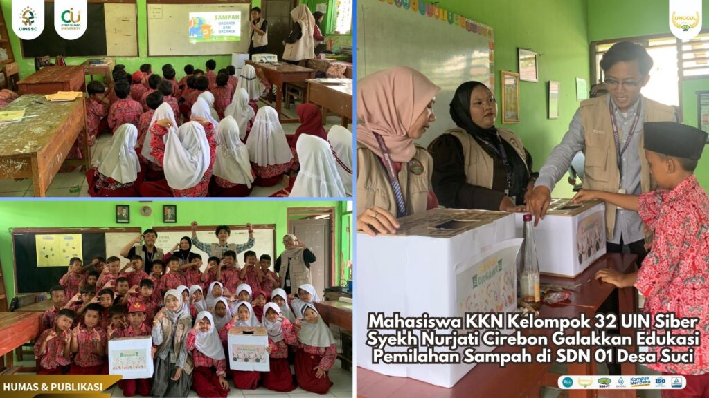 UIN Siber Cirebon (Mundu) – Dalam rangka mendukung upaya pelestarian lingkungan dan pengelolaan sampah berbasis komunitas, mahasiswa Kuliah Kerja Nyata (KKN) Kelompok 32 UIN Siber Syekh Nurjati Cirebon menggelar kegiatan Edukasi Pemilahan Sampah di SDN 01 Desa Suci, Kecamatan Mundu, Kabupaten Cirebon, Selasa (29/07/2025).