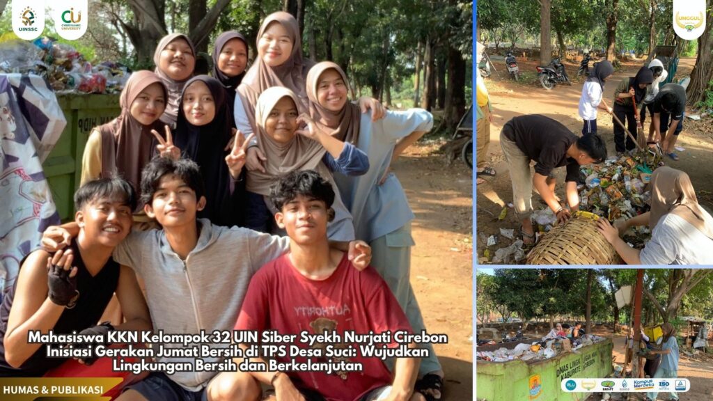 UIN Siber Cirebon (Suci) — Komitmen menjaga kebersihan lingkungan kembali ditunjukkan oleh mahasiswa Kuliah Kerja Nyata (KKN) Kelompok 32 UIN Siber Syekh Nurjati Cirebon melalui program “Gerakan Jumat Bersih” yang digelar di Tempat Pembuangan Sampah (TPS) Desa Suci, Kecamatan Mundu, Kabupaten Cirebon.(25/07).