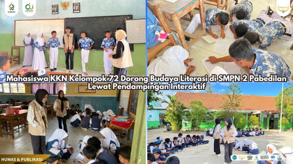 UIN Siber Cirebon (Pabedilan) — Selama lebih dari dua pekan terakhir, suasana SMPN 2 Pabedilan terasa lebih hidup dan penuh antusiasme. Hal ini berkat program Pendampingan Pembiasaan Literasi yang digagas oleh Mahasiswa KKN Kelompok 72 UIN Siber Syekh Nurjati Cirebon, yang berlangsung sejak 23 Juli hingga 7 Agustus 2025, setiap hari Selasa, Rabu, dan Kamis di lapangan serta ruang kelas sekolah tersebut.