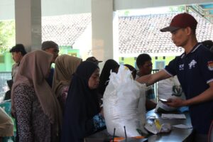 Sejak pagi, para mahasiswa sudah bersiaga di balai desa, bahu-membahu bersama aparatur desa dalam proses pendataan, pengemasan, hingga penyaluran bantuan kepada warga yang datang secara bergiliran. Kehadiran mereka tak hanya mempercepat proses distribusi, namun juga menambah suasana tertib dan ramah dalam pelayanan publik.