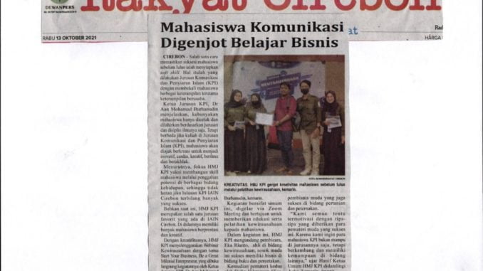 Mahasiswa Komunikasi Digenjot Belajar Bisnis (Rakyat Cirebon/13 Oktober 2021) 15 Oktober 2021 arifin Kliping Digital 0 Mahasiswa Komunikasi Digenjot Belajar Bisnis