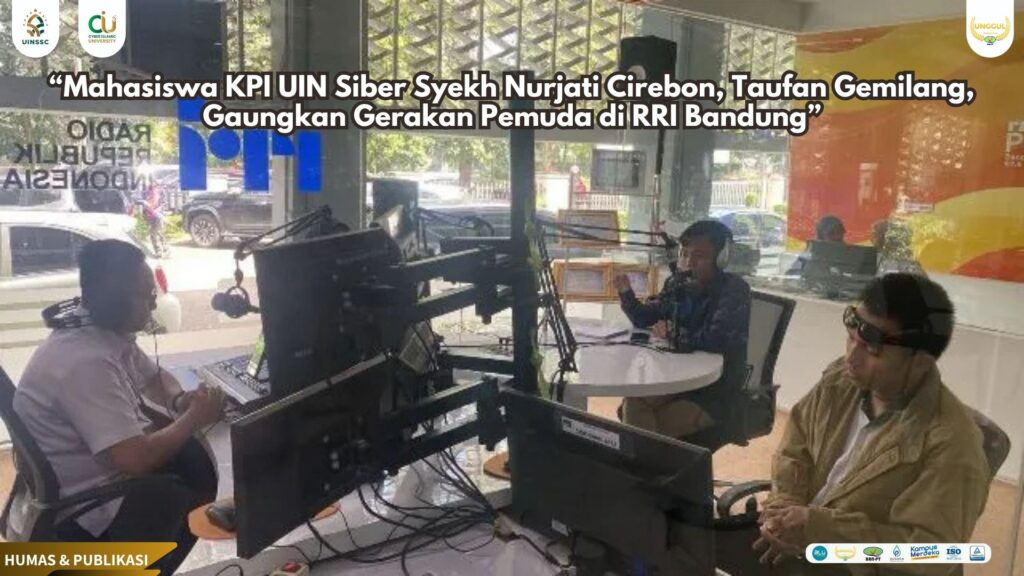 UIN Siber Cirebon (Bandung) – Pemuda asal Kuningan, Taufan Gemilang, mahasiswa aktif UIN Siber Syekh Nurjati Cirebon jurusan Komunikasi Penyiaran Islam, Fakultas Dakwah dan Komunikasi Islam, tampil menginspirasi dalam siaran RRI Bandung bertajuk kepemudaan dan gerakan sosial berkelanjutan. Dalam acara yang berlangsung pada Selasa (29/7), pukul 12.00–13.00 WIB, Taufan mengangkat tema “Gerakan Pemuda sebagai Agen Perubahan dalam Membangun Lingkungan Sosial yang Sehat dan Berkelanjutan.”