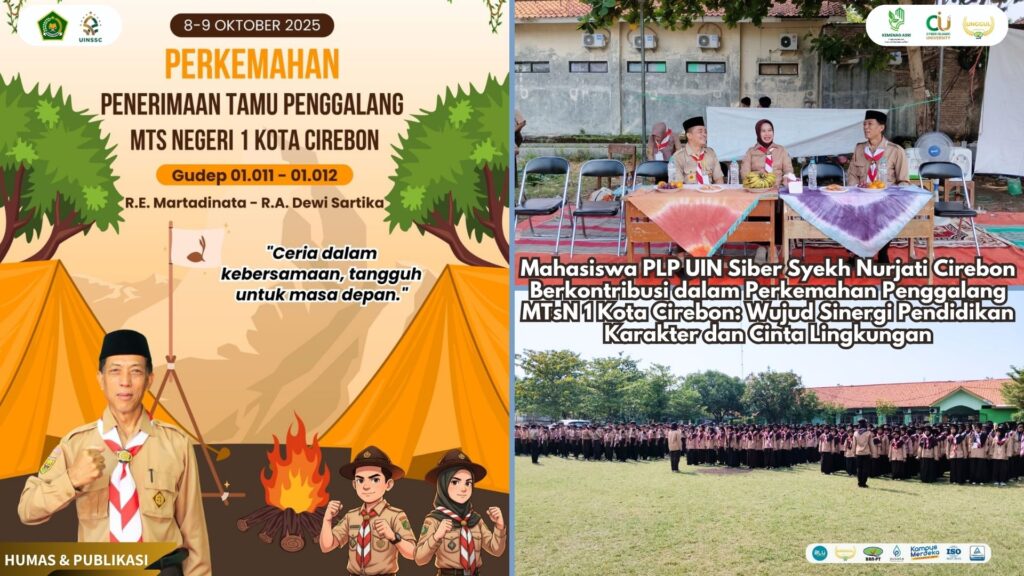 UIN Siber Cirebon — Sebanyak 13 mahasiswa Praktik Lapangan Profesi (PLP) dari UIN Siber Syekh Nurjati Cirebon menunjukkan peran aktifnya dalam kegiatan Perkemahan Penerimaan Tamu Penggalang (PTP) di MTs Negeri 1 Kota Cirebon yang digelar pada 8–9 Oktober 2025 di Lapangan Sepak Bola MAN 1 Kota Cirebon. Kegiatan tahunan ini menjadi momen penting untuk menanamkan nilai-nilai disiplin, kerja sama, kepemimpinan, dan cinta lingkungan kepada para peserta didik baru sebagai anggota Gugus Depan 01.011–01.012 R.E Martadina – R.A Dewi Sartika.