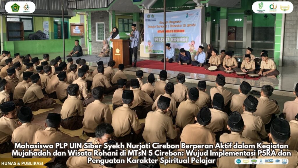 UIN Siber Cirebon — Mahasiswa Program Pengenalan Lapangan Persekolahan (PLP) Universitas Islam Negeri Siber Syekh Nurjati Cirebon (UIN SSC) turut berpartisipasi aktif dalam kegiatan Mujahadah dan Wisata Rohani yang diselenggarakan oleh MTsN 5 Cirebon di Desa Balerante, Kecamatan Palimanan, Kabupaten Cirebon. Kegiatan ini merupakan bagian dari implementasi Projek Penguatan Profil Pelajar Pancasila Rahmatan Lil’alamin (P5RA) yang berfokus pada pembinaan nilai religius dan karakter spiritual peserta didik.