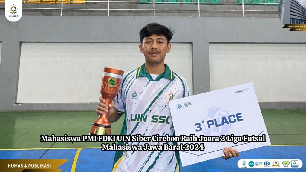 UIN Siber Cirebon (Bandung) – Mahasiswa Jurusan Pengembangan Masyarakat Islam (PMI) Fakultas Dakwah dan Komunikasi Islam UIN Siber Syekh Nurjati Cirebon, Dadan Ramdan, sukses mengukir prestasi gemilang dengan meraih Juara 3 dalam ajang Liga Futsal Mahasiswa Jawa Barat 2024. Kompetisi ini diikuti oleh berbagai perguruan tinggi ternama di Jawa Barat dan berlangsung ketat, namun Dadan berhasil membuktikan kemampuannya di lapangan hijau dengan mengesankan. Minggu, (13/10/2024).