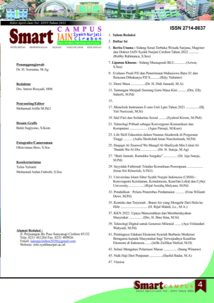 Majalah Smart Campus Edisi April-Juni Volume 26 Tahun 2022 1 September 2022 arifin Majalah Digital 0 Download Sk dan Buletin dibawah : Majalah SmartCampus Edisi April-Juni Vol. 26 Tahun 2022 SK Buletin Edisi April-Juni Vol. 26 Tahun 2022