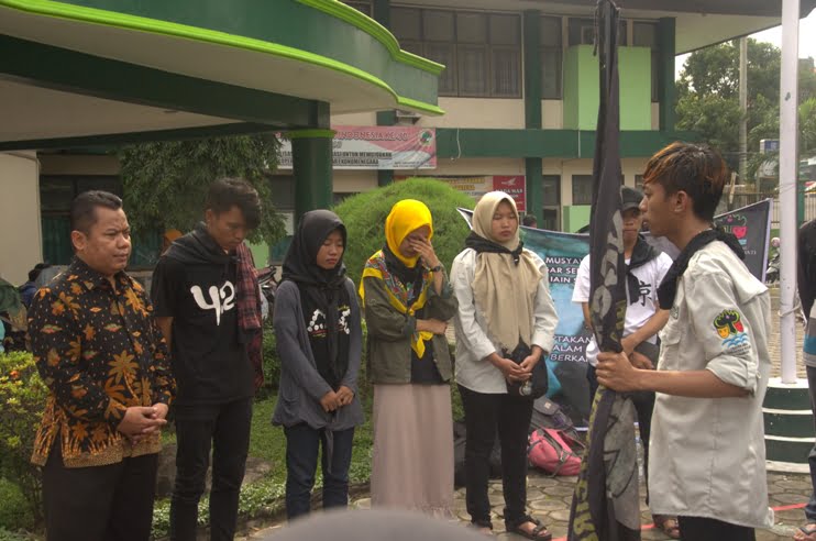 Dr. H. Farihin, M.Pd (Wakil Rektor III) memeberikan sambutan dalam acara MASSTA di halaman rektorat, (27/12).