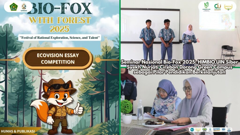 UIN Siber Cirebon – Semangat peduli lingkungan dan inovasi pendidikan berkelanjutan terasa kuat di ruang E102 Gedung Biologi UIN Siber Syekh Nurjati Cirebon pada Rabu (10/9/2025). Himpunan Mahasiswa Biologi (HIMBIO) Fakultas Ilmu Tarbiyah dan Keguruan, melalui kolaborasi Departemen Pengabdian Kepada Masyarakat (PK) dan Departemen Lingkungan Hidup sukses menyelenggarakan Ecovision Essai Competition, salah satu agenda unggulan dalam rangkaian Biology Festival of Excellences (Bio-Fox) 2025.
