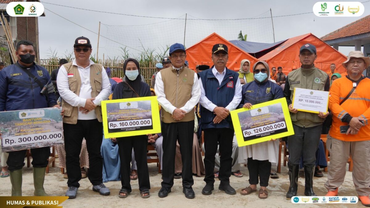 UIN Siber Cirebon (Kemenag) — Kementerian Agama menyalurkan bantuan senilai Rp596 juta untuk mendukung pemulihan madrasah, guru, dan keluarga siswa yang terdampak longsor dan banjir di Desa Pasirlangu, Kecamatan Cisarua, Kabupaten Bandung Barat, Jawa Barat. Bantuan tersebut diserahkan Menteri Agama Nasaruddin Umar kepada para penerima bantuan di Bandung Barat, Minggu (1/2/2026).