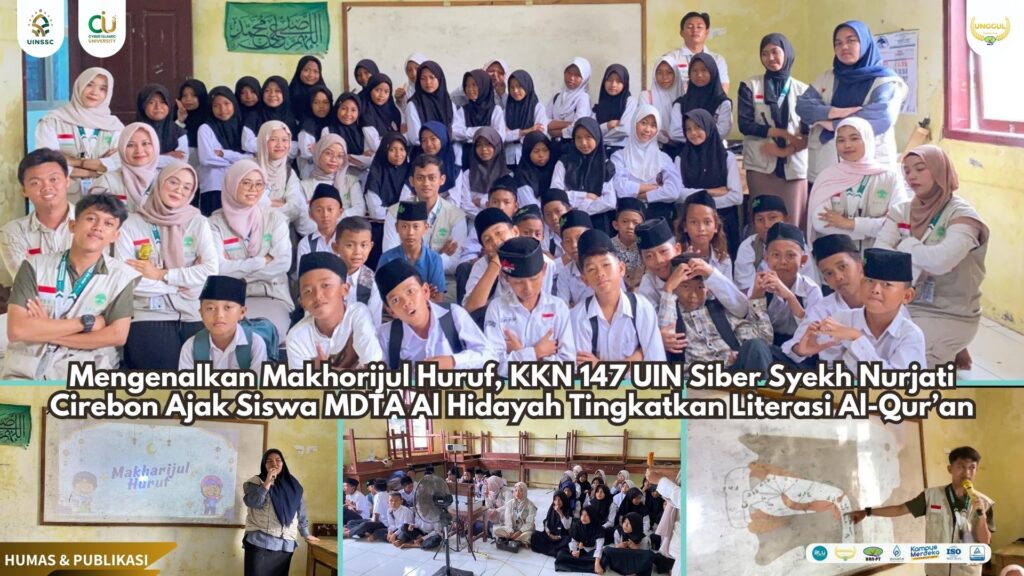 UIN Siber Cirebon (Pangenan) — Mahasiswa Kuliah Kerja Nyata (KKN) Kelompok 147 Universitas Islam Negeri (UIN) Siber Syekh Nurjati Cirebon melaksanakan program Sosialisasi Penguatan Literasi Al-Qur’an di MDTA Al Hidayah, Desa Beringin, Kecamatan Pangenan, Kabupaten Cirebon. Kegiatan ini digelar dalam dua hari, yakni Senin (11/8) untuk siswa kelas 1 dan 2, serta Selasa (12/8) untuk siswa kelas 3 dan 4.