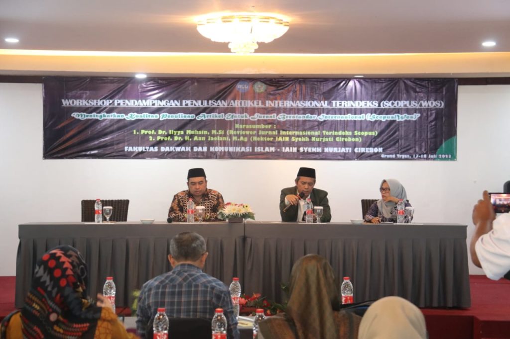 Fakultas Dakwah dan Komunikasi Islam (FDKI) IAIN Syekh Nurjati Cirebon gelar Workshop Pendampingan Penulisan Artikel Internasional Terindeks (Scopus/Wos) dengan tema ” Meningkatkan Kualitas Penulis Artikel Jurnal Internasional”. Senin, (17/07/2023).