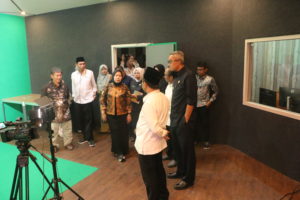 Rektor IAIN Syekh Nurjati Cirebon, Prof Dr H Aan Jaelani, M.Ag., dengan penuh antusias memperkenalkan ruangan podcast dan fungsinya kepada tamu-tamunya. Nanik Murwati,S.E., M.A., juga tak ragu mengajukan pertanyaan kepada Rektor terkait fungsi Gedung Siber dan perencanaan ke depannya.