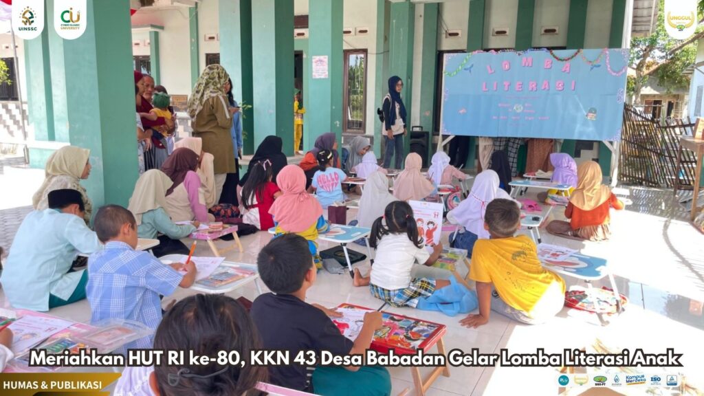 UIN Siber Cirebon (Babadan) – Dalam rangka memeriahkan Hari Ulang Tahun (HUT) ke-80 Republik Indonesia, Kelompok KKN 43 Desa Babadan sukses menggelar Lomba Literasi untuk anak-anak di Kantor Kuwu Desa Babadan. Acara ini menjadi ajang meriah sekaligus edukatif yang menumbuhkan semangat kebangsaan, kreativitas, serta kecintaan terhadap dunia literasi sejak dini.(13/08).