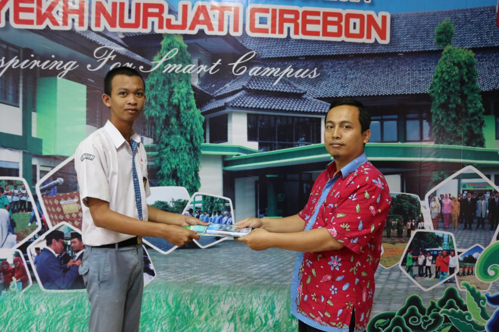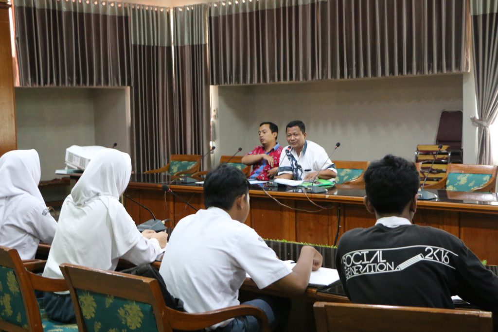 Abdul Mubarok M.Si (Staf Bagian Umum) memberikan cinderamata kepada siswa SMAN 4 Kota Cirebon di Ruang Rapat Senat lantai 2 Gedung Rektorat Tahun 2017.