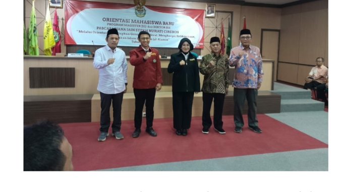 IAIN Cirebon – Orientasi Mahasiswa Baru (Maba) Program Magister dan Doktor Pascasarjana Institut Agama Islam Negeri (IAIN) Syekh Nurjati Cirebon mengusung tema “Melalui Orientasi Kita Siapkan Generasi Moderat, Menghargai Kebhinekaan, Berasaskan Islam Rahmatan Lil Alamin”, yang dilaksanakan di Gedung Pascasarjana dan diikuti 115 Program Magister dan 38 Program Doktor. 09 September 2023.
