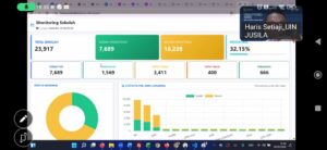 Dalam sesi laporan teknis, Koordinator Pokja TIK/SSE, Harris Setiaji, memaparkan perkembangan dashboard PMB PTKIN 2026 secara rinci. Tercatat, dari 23.917 sekolah, sebanyak 7.689 sekolah telah melakukan registrasi, sementara 16.228 sekolah belum registrasi, dengan persentase capaian 32,15 persen. Ia juga menjelaskan progres input data kurikulum sebanyak 1.569, input siswa 3.411, input nilai 400, hingga tahap finalisasi sebanyak 666.