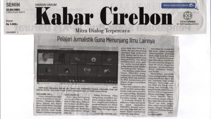 Pelajari Jurnalistik Guna Menunjang Ilmu Lainnya (Kabar Cirebon/12 Juli 2021) 13 Oktober 2021 arifin Kliping Digital 0 Pelajari Jurnalistik Guna Menunjang Ilmu Lainnya