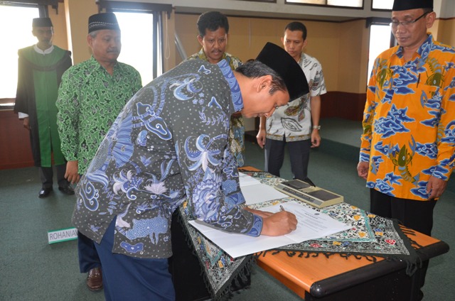 Rektor IAIN memimpin acara pelantikan dengan mengambil sumpah jabatan kepada Warek, Dekan, Direktur Pascasarjana Terpilih. Pengambilan Sumpah Jabatan. Dr. Saefuddin Zuhri, M. Ag sebagai Wakil Rektor I Bidang Akademik. Dr. H. Adib, M. Ag sebagai Wakil Rektor II Bidang Keuangan dan Kepegawaian. Dr. H. Farihin, M. Pd sebagai Wakil Rektor III Bidang Kemahasiswaan dan Kerjasama. Dr. Ilman Nafi’a, M. Ag sebagai Dekan Fakultas Ilmu Tarbiyah dan Keguruan. Dr.Aan Jaelani, M. Ag sebagai Dekan Fakultas Syari’ah, Ekonomi Islam. Dr. Hajam, M. Ag sebagai Dekan Fakultas Ushuluddin, Adab, Dakwah. Prof. Dr. H. Jamali, M. Ag sebagai Direktur Pascasarjana. Prof. Dr. H. Cecep Sumarna, M. Ag dan Kabiro AUAK memberikan ucapan selamat kepada pejabat yang dilantik.