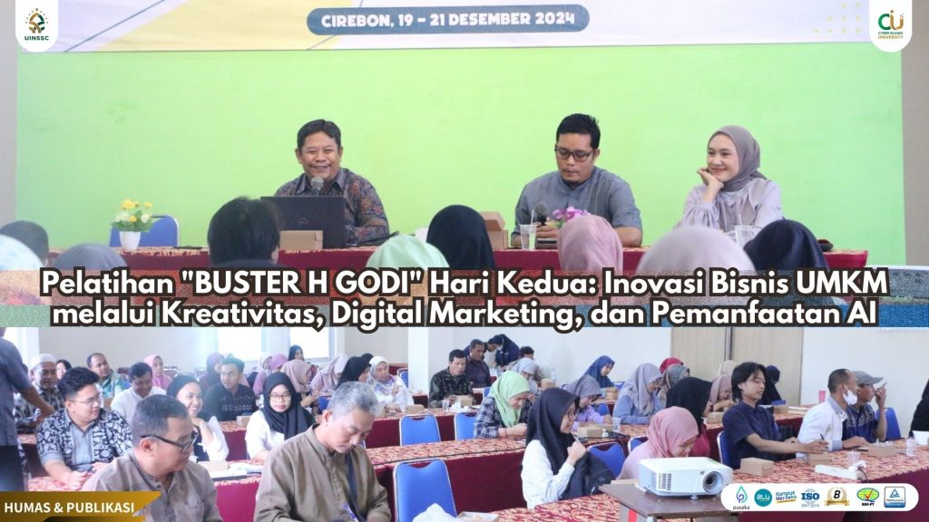 UIN Siber Cirebon – Hari kedua pelatihan “BUSTER H GODI” yang diselenggarakan di UIN Siber Syekh Nurjati Cirebon, menghadirkan sesi penuh inspirasi dan wawasan baru untuk para pelaku UMKM. Sesi pertama dimulai dengan paparan mendalam dari Toheri, M.Si., yang mengulas topik “Creativity & Design Thinking”. Toheri menjelaskan bagaimana konsep tersebut sangat relevan bagi UMKM dalam menciptakan dan memanfaatkan ide-ide kreatif yang dapat memperkuat dan mendukung keberlanjutan bisnis mereka. Jum’at, (20/12/2024).