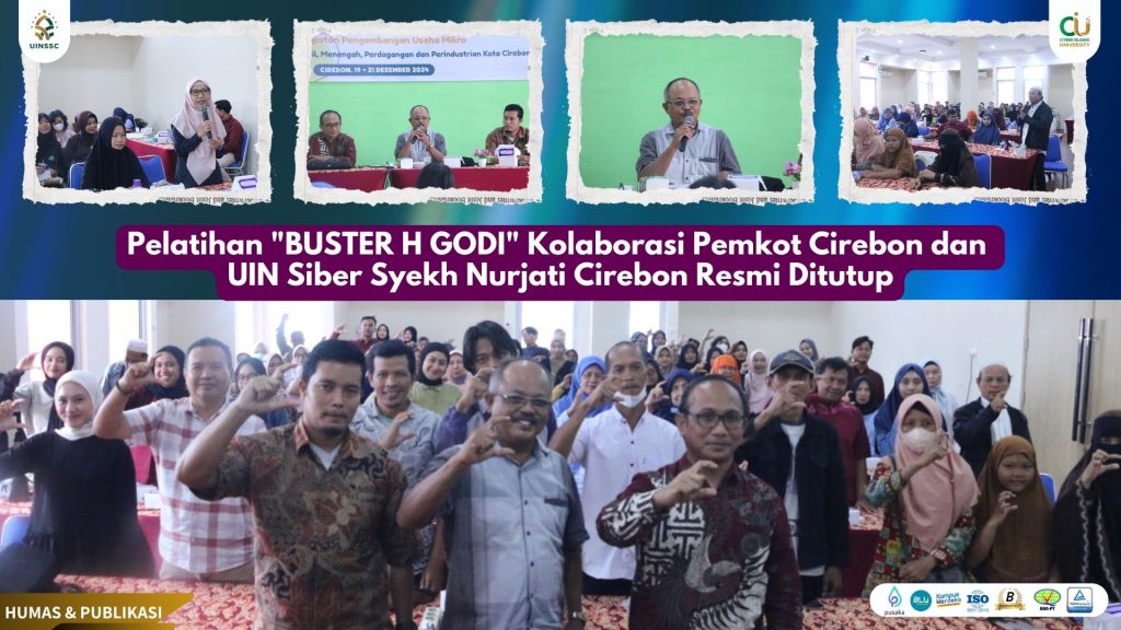 UIN Siber Cirebon – Program “Pelatihan dan Bimbingan Usaha Terpadu Wirausaha Go Digital (BUSTER H GODI)”, hasil kolaborasi antara Dinas Koperasi, Usaha Kecil, Menengah, Perdagangan, dan Perindustrian Pemerintah Kota Cirebon dengan UIN Siber Syekh Nurjati Cirebon (Cyber Islamic University/CIU), resmi ditutup pada Sabtu (21/12/2024). Kegiatan ini bertempat di Auditorium LPM CIU lantai 3 dan berlangsung selama tiga hari, diikuti oleh 100 peserta UMKM dari wilayah Kota Cirebon.