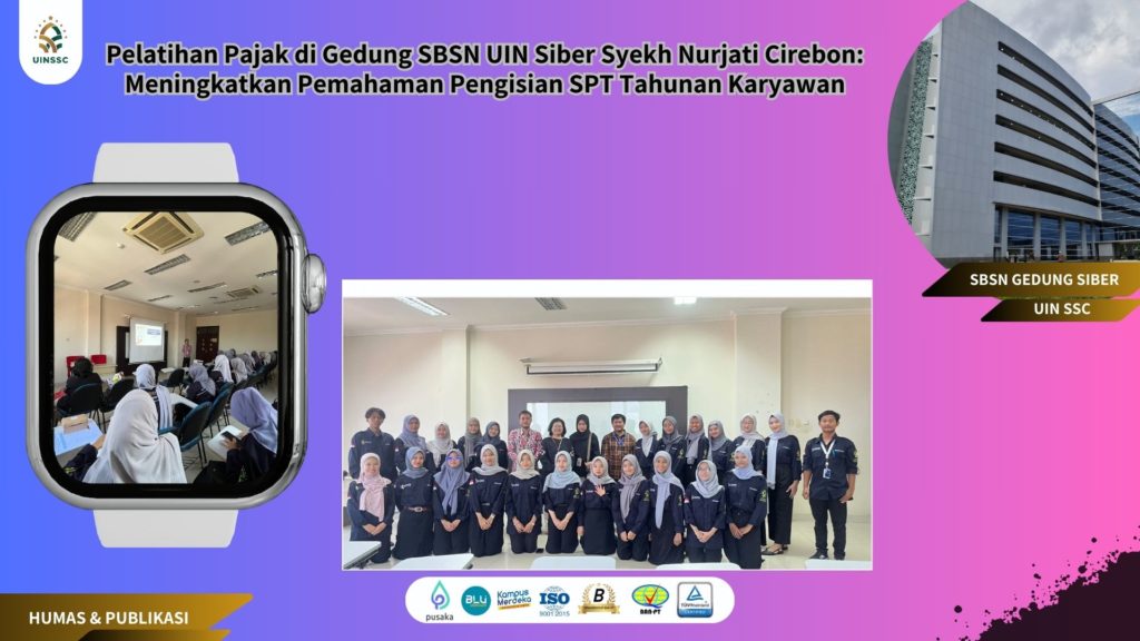 UIN Siber Cirebon – Gedung SBSN Universitas Islam Negeri (UIN) Siber Syekh Nurjati Cirebon menggelar pelatihan pajak yang bertujuan untuk meningkatkan pemahaman para karyawan tentang pengisian SPT tahunan. Pelatihan ini diadakan oleh Tax Center IAIN Syekh Nurjati Cirebon bekerja sama dengan Kantor Pelayanan Pajak Pratama (KPP) Pratama Cirebon Satu. Selasa, (30/07/2024).
