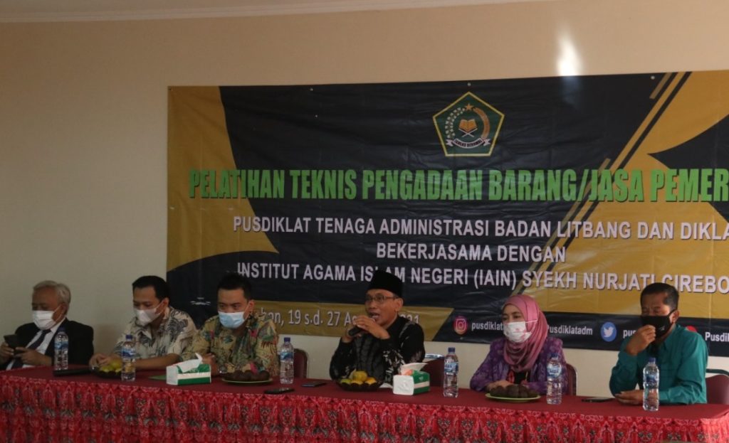 IAIN Syekh Nurjati Cirebon menjadi tempat kegiatan Pelatihan Teknis Pengadaan Barang/Jasa Pemerintah. Pelatihan ini merupakan Kerjasama Pusdiklat Tenaga Administrasi Badan Litbang dan Diklat Kementerian Agama RI dengan IAIN Cirebon, dalam kegiatan tersebut, sebanyak 30 pegawai di lingkungan IAIN Syekh Nurjati Cirebon menjadi peserta pelatihan. Mereka terdiri dari unsur dosen, Warek, Pranata dan pegawai tenaga administrasi. Pelatihan yang sedianya berlangsung sekitar 9 hari, di mulai sejak tanggal 19 sampai dengan 27 Agustus 2021. kegiatan tersebut dibuka langsung oleh Rektor IAIN Syekh Nurjati Cirebon, Dr. H. Sumanta Hasyim, M.Ag. Panitia Penyelenggara Kegiatan Pelatihan dari Pusdiklat Tenaga Administrasi Badan Litbang dan Diklat Kementerian Agamar RI Agus Wardono menyatakan bahwa kegiatan pelatihan teknis ini merupakan kerjasama pihaknya dengan IAIN Syekh Nurjati Cirebon. Kamis (19/8/2021).