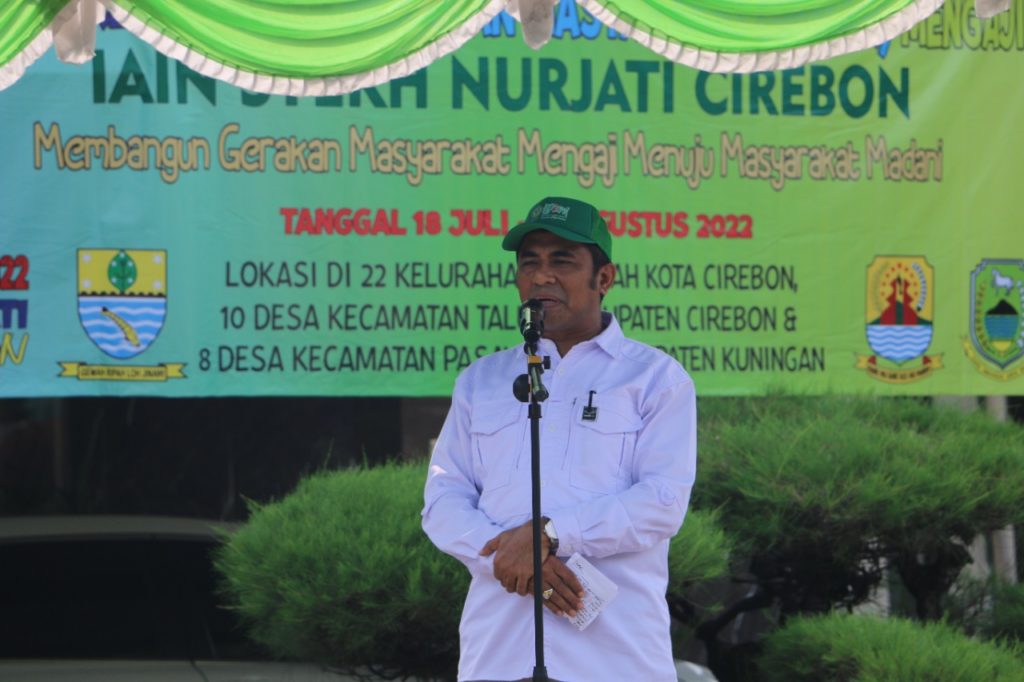 Lembaga Penelitian dan Pengabdian Kepada Masyarakat (LP2M) Institut Agama Islam Negeri (IAIN) Syekh Nurjati Cirebon menggelar Pelepasan Peserta Kuliah Kerja Nyata (KKN) Gerakan Masyarakat (GEMAR) Mengaji IAIN Syekh Nurjati Cirebon. Dasar dilaksanakannya KKN ini yaitu UUD Dikti tentang tridharma perguruan tinggi, Peraturan menteri tentang MBKM, Peraturan menteri agama No. 13 Thn. 2013 tentang tridharma perguruan tinggi di lingkungan PTKIN , SK Rektor tentang RKKL Tahun 2022 Program LP2M Tahun 2022.. Kegiatan tersebut merupakan salah satu rangkaian kegiatan LP2M pada tahun 2022. Tujuan untuk meningkatkan kualitas kehidupan beragama dan tradisi keagamaan di masyarakat melalui gerakan masyarakat mengaji, tema: dari tradisi mengaji menuju masyarakat madani, sukseskan visi sehati, sehat hijau agamis tentram dan inofativ. Kegiatan tersebut dihadiri oleh Dr. H. Saefudin Zuhri, M.Ag (Wakil Rektor I Sekaligus PLH Rektor), Ir. Sunarini, M.Kom (Kepala Biro AUAK), Dr. Kartimi, M.Pd (Warek II) beserta jajaran pimpinan dekanat dan kaprodi. Kegiatan tersebut menghadirkan tamu undangan Drs. H. Agus Mulyadi M. Si.,(Sekda Kota Cirebon) beserta staf, Para Camat Se Kota Cirebon Bpk. Drs. Khairul Utomo Kejaksanan, Bpk. Drs. Otang PLT Camat Kesambi, Bpk. Adam, S.SdP Camat Lemah Wungkuk, Bpk. Gandi, S.SdP Camat Pekalipan dan Harjamukti dan segenap peserta KKN Gemar Mengaji IAIN Syekh NUrjati Cirebon Tahun 2022 berjumlah 324 mahasiswa.