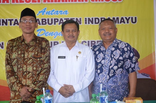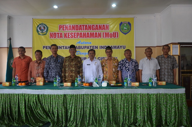 Foto bersama Wakil Bupati Kabupaten Indramayu Drs. H. Supendi, M. Si (tengah) bersama Rektor IAIN Syekh Nurjati Cirebon Dr. H. Sumanta, M. Ag beserta unsur Pimpinan IAIN Syekh Nurjati Cirebon.