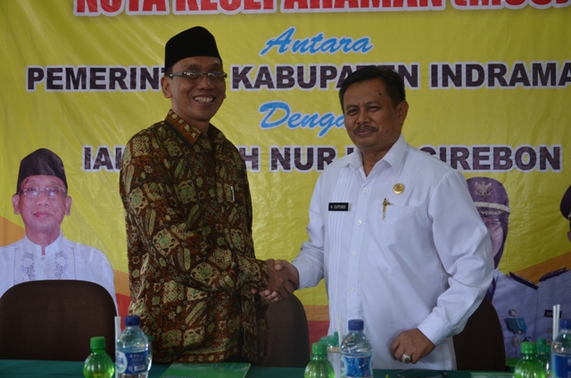 Rektor IAIN Syekh Nurjati Cirebon DR. H. Sumanta, M. Ag memberikan sambutan dalam acara Pemaparan Renstra IAIN Syekh Nurjati Cirebon.Dr. H. Adib, M. Ag Warek II sekaligus ketua TIM Pengembangan dan Alih Status mempresentasikan Rencana Strategis IAIN Syekh Nurjati Cirebon kepada Wakil Bupati Kabupaten Indramayu Drs. H. Supendi, M. Si beserta tamu undangan.Presentasi Rencana Strategis IAIN Syekh Nurjati Cirebon oleh Tim Pengembangan dan Alih Status IAIN menuju UIN Syekh Nurjati Cirebon.Drs. H. Supendi, M. Si Wakil Bupati Kabupaten Indramayu menyambut baik Presentasi Rencana Strategis IAIN Syekh Nurjati Cirebon oleh Tim Pengembangan dan Alih Status IAIN menuju UIN Syekh Nurjati Cirebon.Drs. H. Supendi, M. Si (ditengah) didampingi Dr. H. Sumanta, M. Ag (Rektor) dan Drs. H. Akso, M. Pd (Kepala Biro AUAK) IAIN Syekh Nurjati Cirebon.Berjabat tangan Rektor IAIN Syekh Nurjati Cirebon Dr. H. Sumanta, M. Ag dengan Wakil Bupati Kabupaten Indramayu Drs. H. Supendi, M. Si.