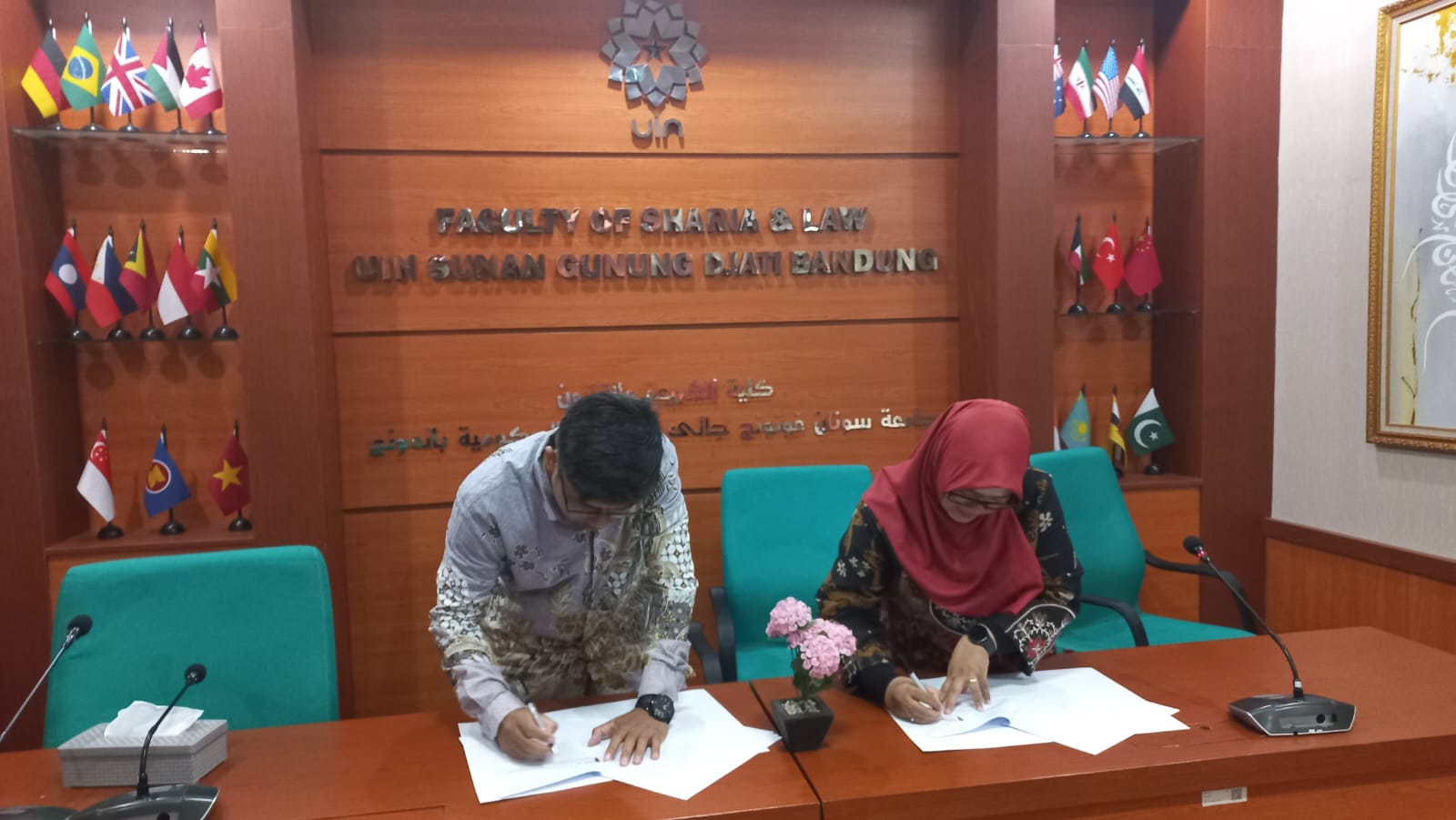 Ketua PKBH UIN SSC, H. Ahmad Khoirudin, Lc., M.H., menandatangani MoU sebagai pihak pertama, sedangkan Ketua JDIH UIN Bandung, H. Dewi Mayaningsih, S.H., M.H., bertindak atas nama pihak kedua.