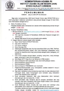Pendaftaran Ulang Calon Maba Jalur SPAN-PTKIN Tahun 2024 IAIN Syekh Nurjati Cirebon 7 Mei 2024 arifin Berita 0 Unduh file PDF dibawah : Pengumuman Daftar Ulang SPAN-PTKIN 2024_Stempel